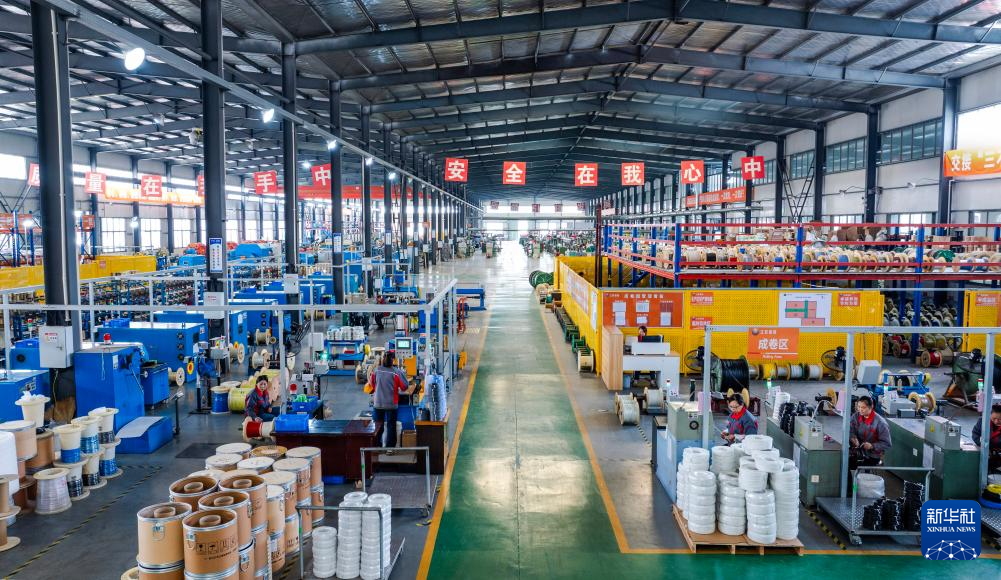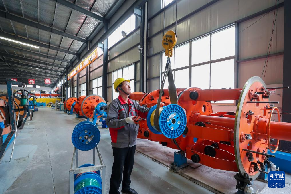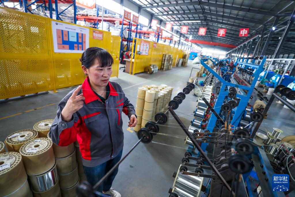 5月13日,工人在位于江苏省兴化市戴南镇的江苏银锡高温线缆有限公司车间进行生产作业。