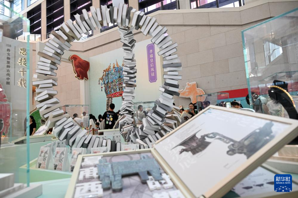 这是中国国家博物馆内摆放的《思接千载:115件文物里的古代中国》图书模型(5月13日摄)。