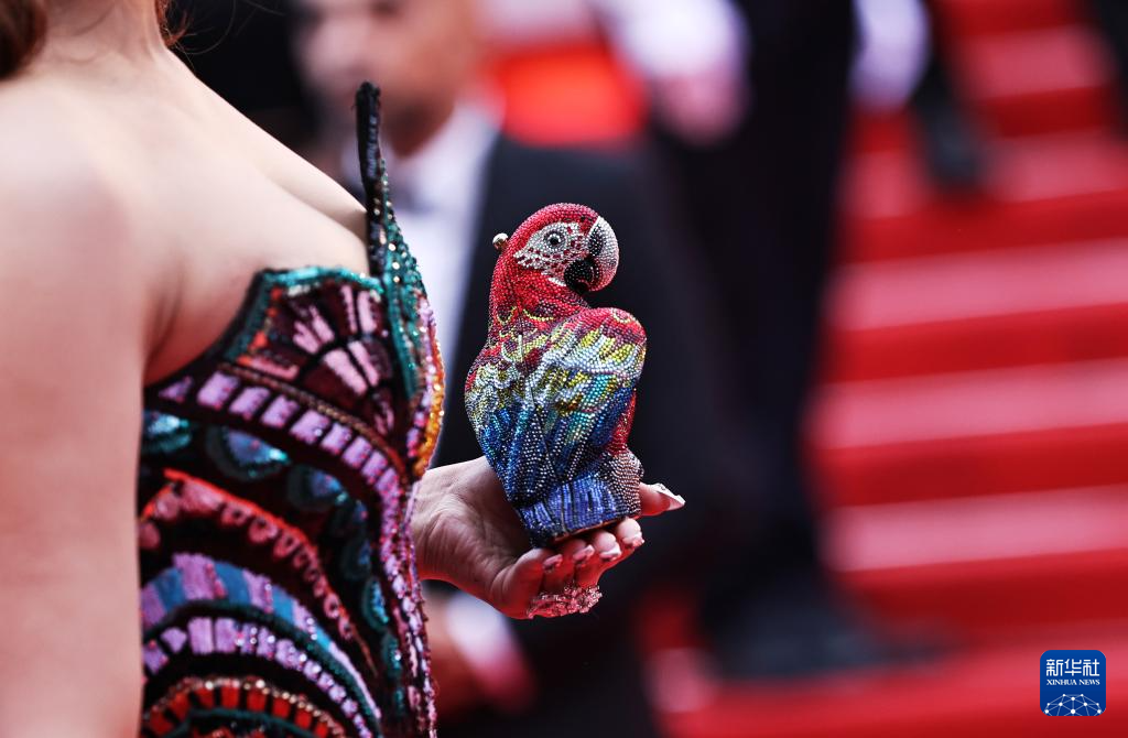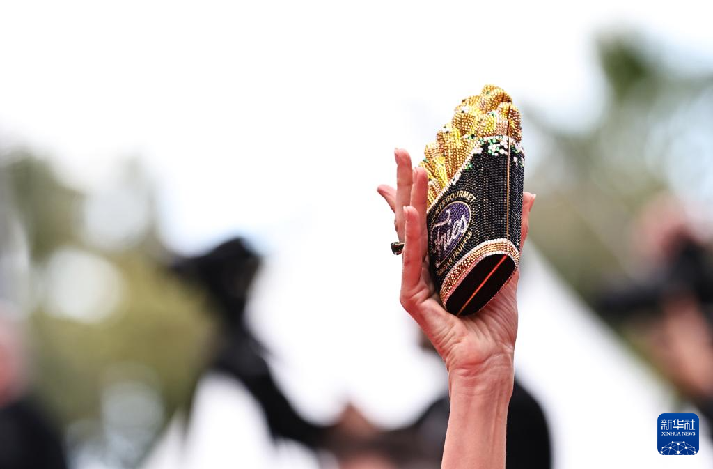 这是5月13日在法国戛纳举行的第78届戛纳国际电影节上拍摄的一名嘉宾携带的装饰物。