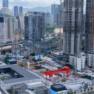深汕铁路塘朗山隧道盾构始发井位于中心城区(5月14日摄,无人机照片)。