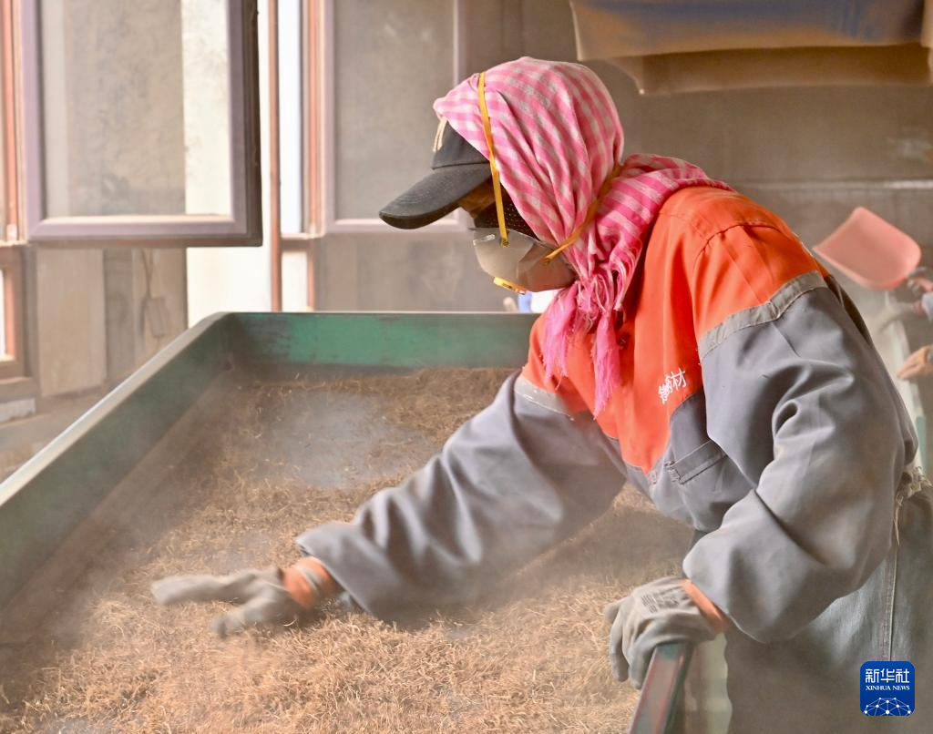 5月14日,在辽宁省抚顺市新宾满族自治县,一名工人在车间内加工辽细辛。