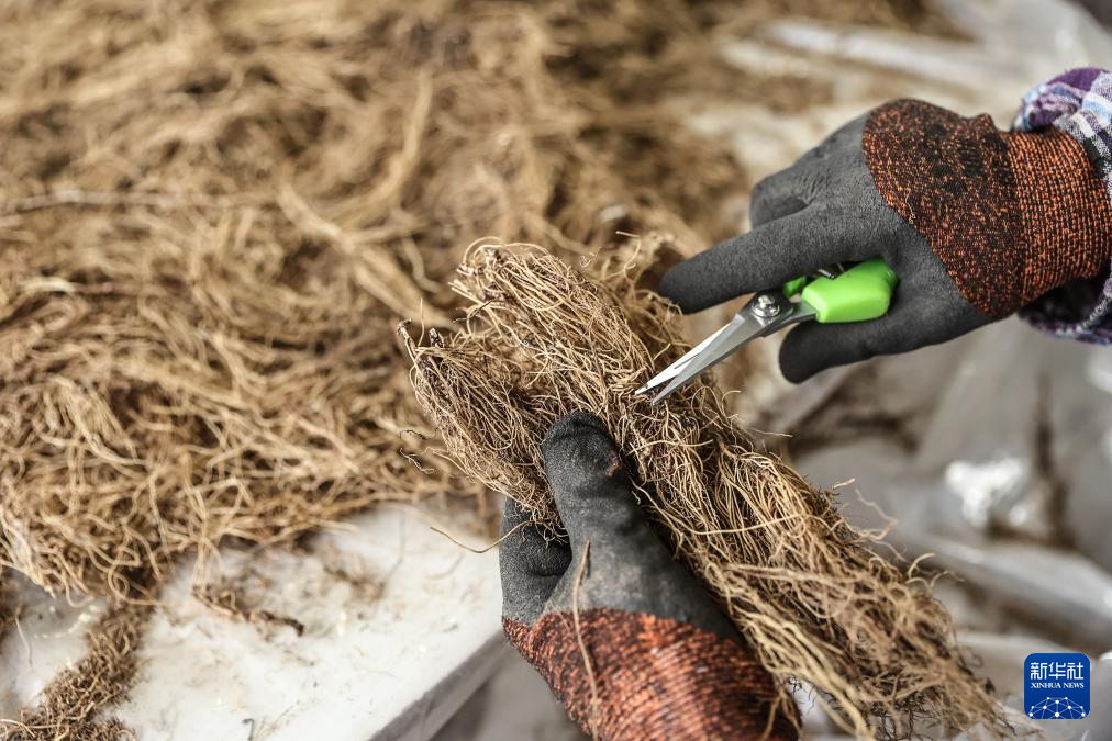 5月14日,在辽宁省抚顺市新宾满族自治县,一家生产辽细辛企业的工作人员在生产车间内加工辽细辛。