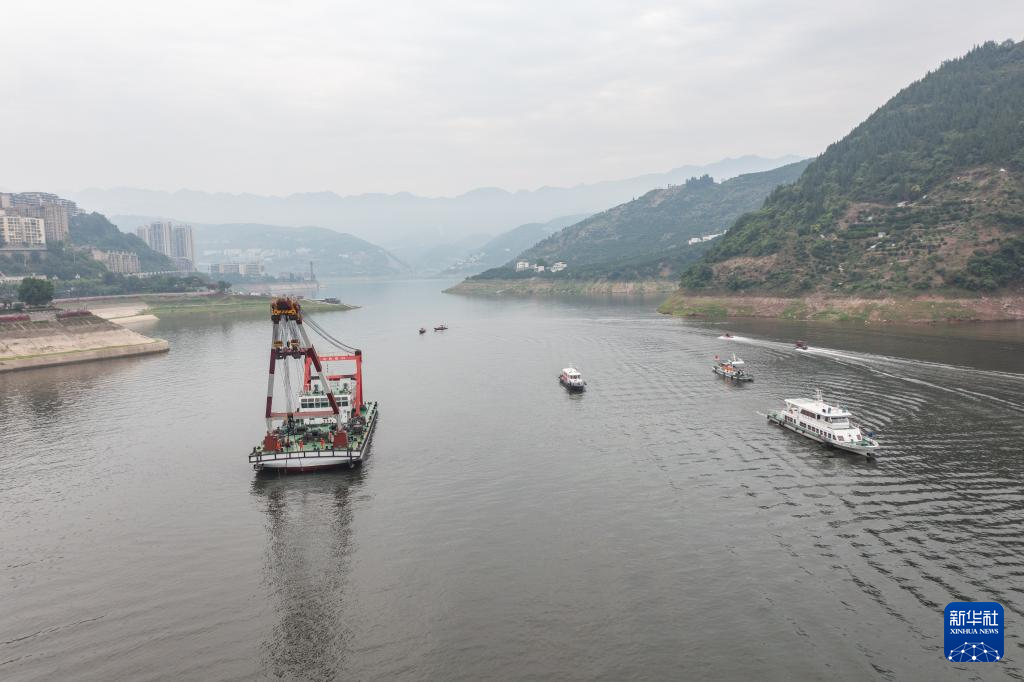 这是5月15日在重庆市奉节县拍摄的三峡库区地方航道危岩地灾应急实战演练现场(无人机照片)。