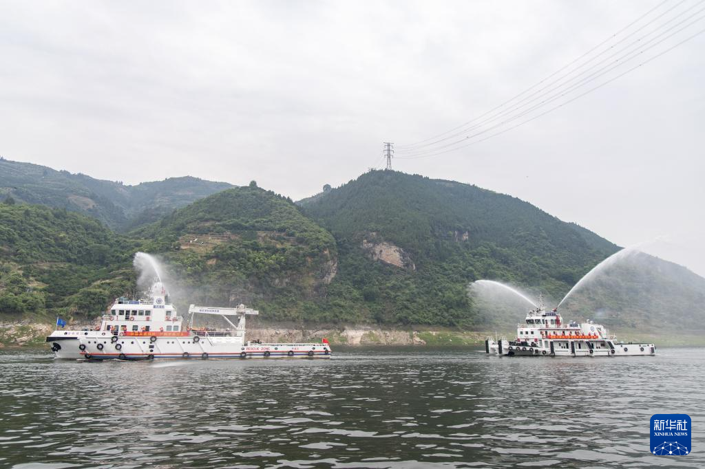 5月15日,重庆市交通运输委联合奉节县人民政府,组织多部门开展三峡库区地方航道危岩地灾应急演练。演练模拟奉节县朱衣河硝水坪危岩地灾点因持续强降雨突发大面积滑坡,塌方体倾泻入河,导致搭载300余名乘客的“赤甲1号”客船失控,人员落水;朱衣河码头陆路通道阻断,100余人、10余台车辆被困;下游货船断链失控等多灾并发的复杂场景,全面检验人员救助、旅客转运、船舶拦截拖带、港口避险、航道扫测与疏浚等水上应急救援能力,为长江航运安全保驾护航。