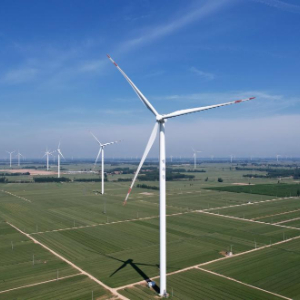 5月15日拍摄的故城县三朗镇附近的风电场(无人机照片)。