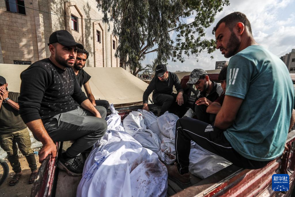 5月14日,在加沙地带北部杰巴利耶地区,巴勒斯坦人悼念遇难者。