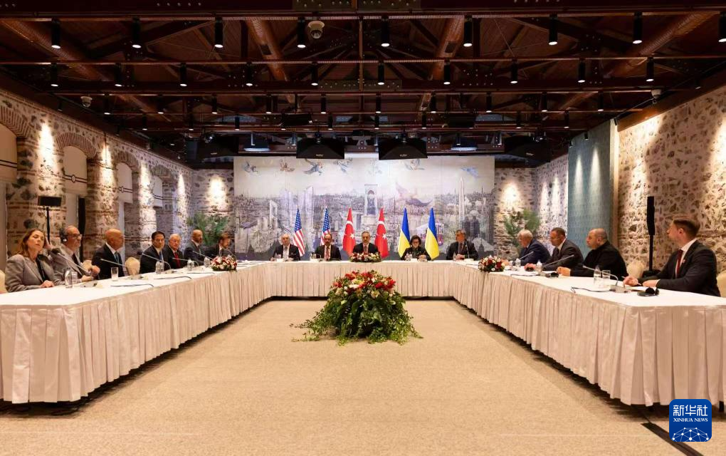 5月16日,在俄乌谈判开始前,美国、乌克兰和土耳其三方在土耳其伊斯坦布尔举行会谈。