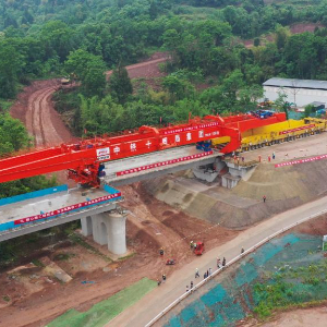 5月16日,重庆市大足区,工作人员在现场进行首片双线箱梁的安装工作。