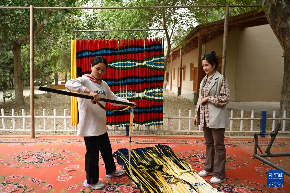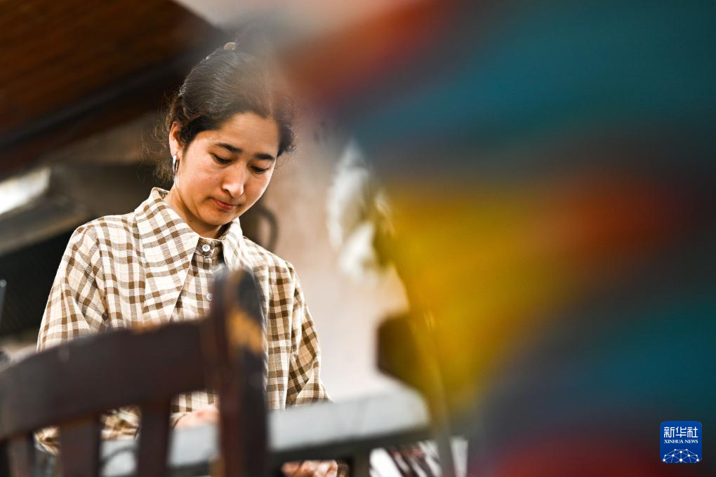 如今在和田吉亚乡,仍保留着古老的扎染技术和木制织布机,这里被视为艾德莱斯绸的主要发源地。当地百姓以艾德莱斯为荣,人们争做非遗技艺的传承者。走进吉亚乡,织布机“哒哒”声不绝于耳,古老技艺在这里的家家户户赓续传承。