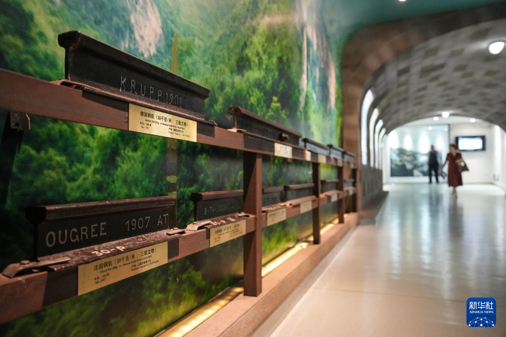 参观者在云南铁路博物馆“三轨并存”展区参观。这里从上到下分别展示的是米轨、寸轨、准轨(5月14日摄)。