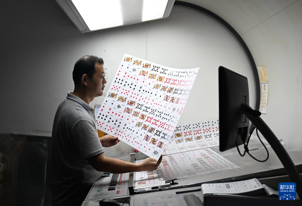 5月16日,在位于启东经济开发区的姚记扑克产业园生产车间,工人检查产品质量。