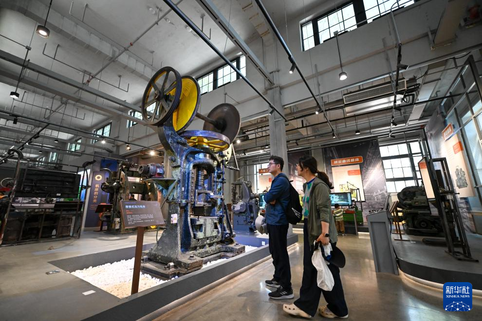 5月18日,游客在天津机床工业博物馆内参观。