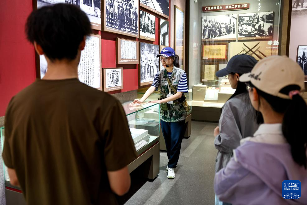5月17日晚,志愿者在中国人民革命军事博物馆为参观者讲解。