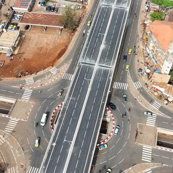 这是5月1日在几内亚首都科纳克里拍摄的邦贝德立交桥项目建设现场(无人机照片)。