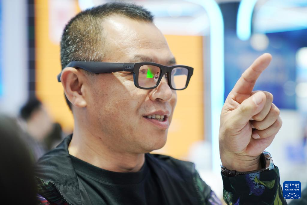 5月18日,市民在哈洽会主会场体验AI智能眼镜。