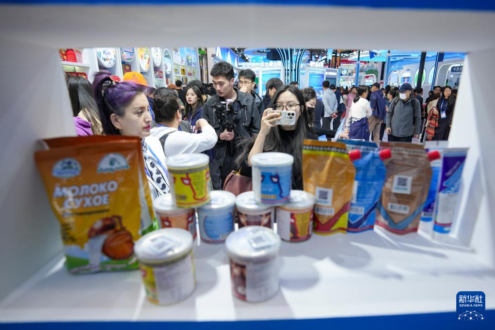 5月18日,在哈洽会牡丹江展区,人们在了解俄罗斯产品。