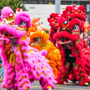 5月18日,民俗文化方阵的表演队伍在进行巡游。
