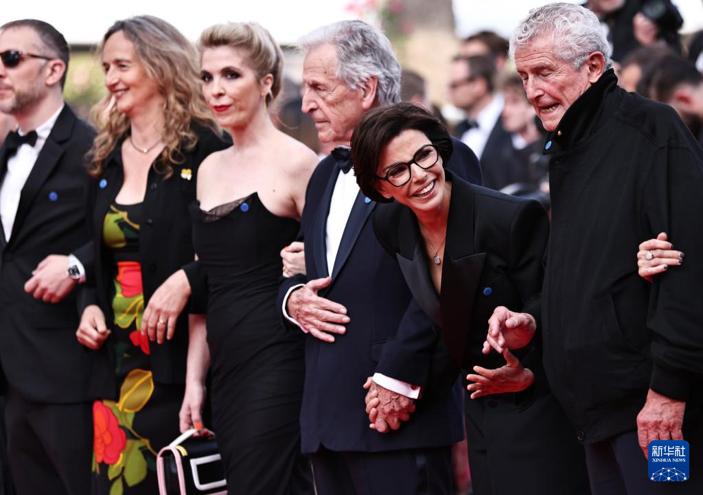 5月18日,在法国南部小城戛纳举行的第78届戛纳国际电影节上,法国文化部长达蒂(右二)出席主竞赛单元影片《腓尼基计划》首映式。