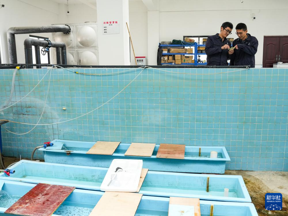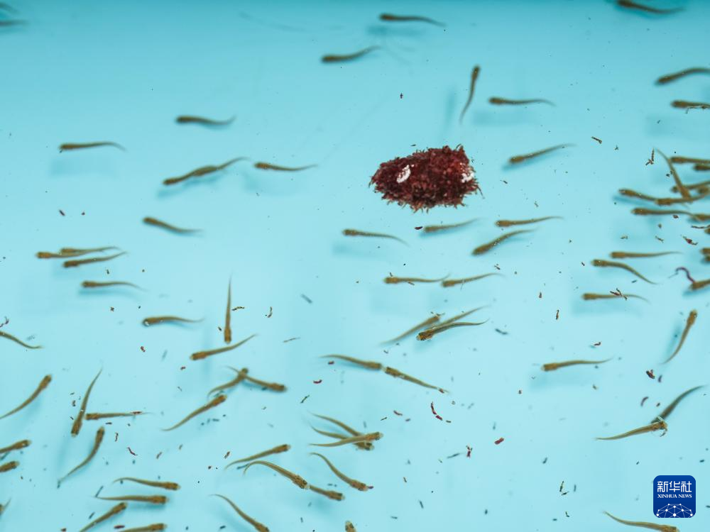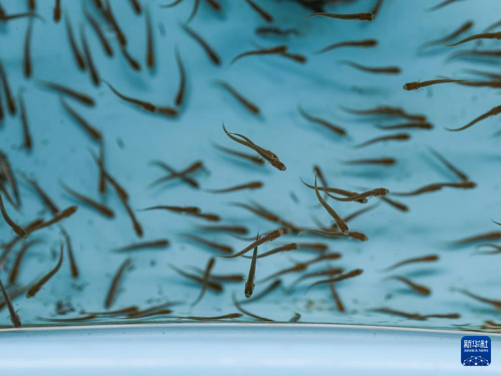 记者在四川足木足河流域水电开发有限公司鱼类增殖放流站看到,2025年人工繁育的1.2万余尾川陕哲罗鲑子二代鱼苗成功摄食,鱼苗从内源性营养转化为外源性营养,基本具备独立生存能力,标志着我国首次实现这一极危物种的全人工规模化繁育。
