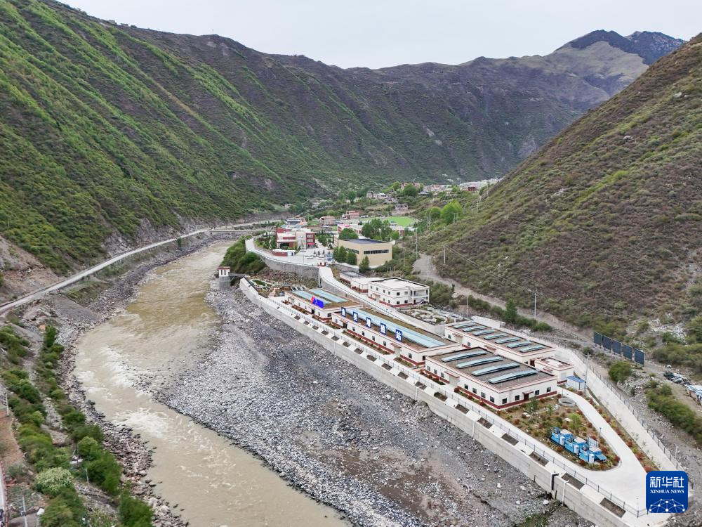 这是5月18日在四川省阿坝藏族羌族自治州马尔康市日部乡拍摄的四川足木足河流域水电开发有限公司鱼类增殖放流站(无人机照片)。