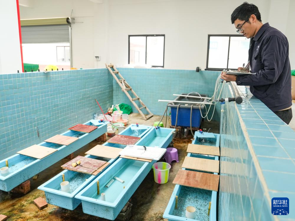 5月18日,科研人员在对川陕哲罗鲑子二代鱼苗的养殖情况进行每日记录。