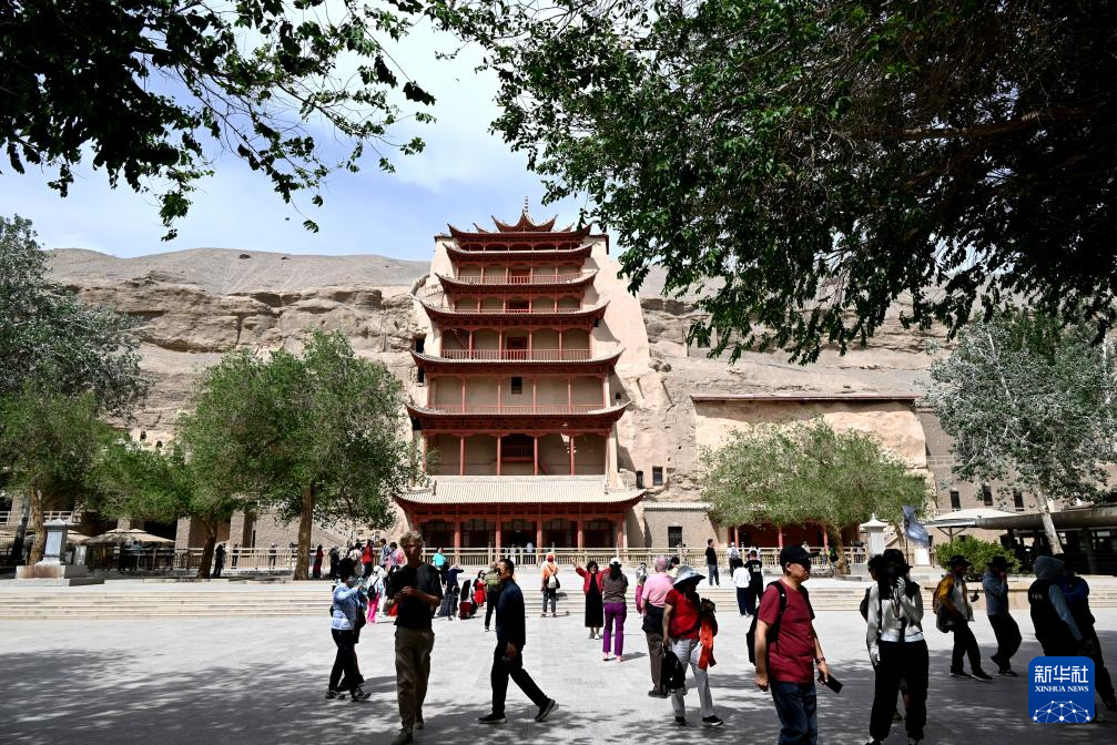 5月19日,游客在甘肃省敦煌市莫高窟游览参观。