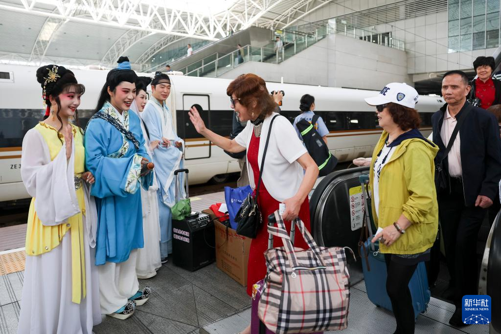 当日是第15个“中国旅游日”,近百名银发游客乘坐G7236次列车,从上海火车站出发前往镇江,开启为期3天的宜游镇江康养之旅。