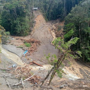 这是5月17日在印度尼西亚西巴布亚省拍摄的洪水和山体滑坡灾害现场。