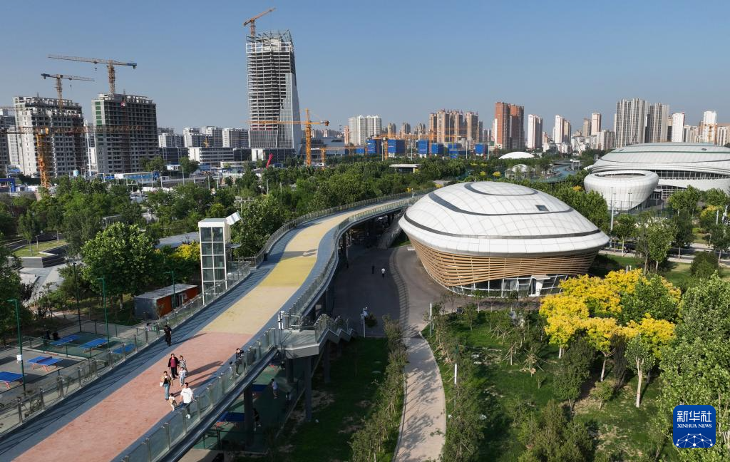 5月19日拍摄的石家庄市高铁片区中央绿色体育公园(无人机照片)。