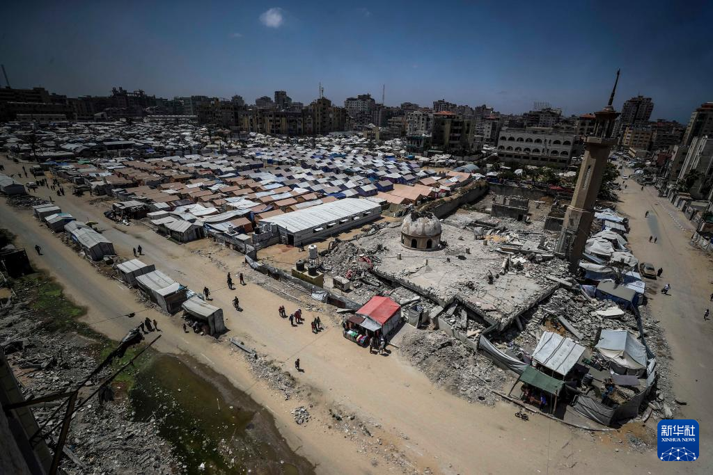 这是5月20日在加沙地带北部的杰巴利耶难民营拍摄的巴勒斯坦人的临时住所。
