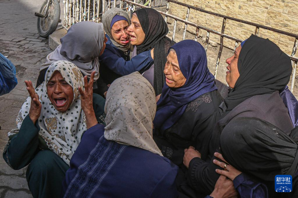 5月20日,在以军袭击后的加沙城,当地妇女失声痛哭。