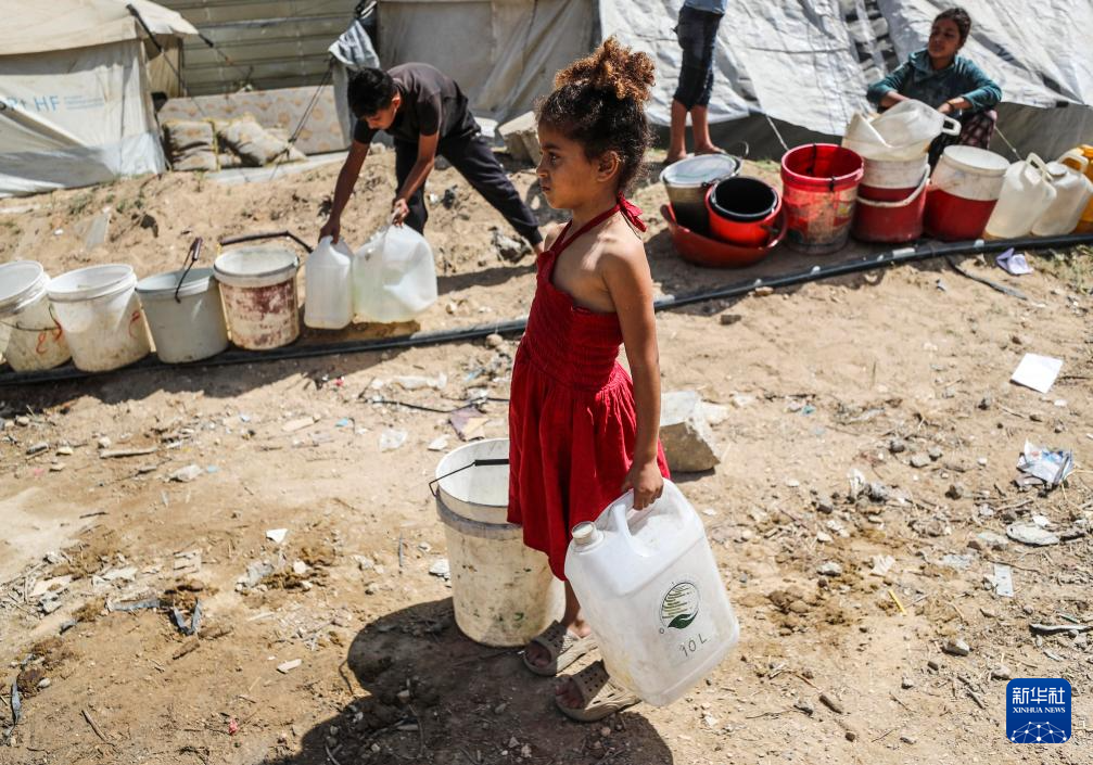 5月20日,在加沙地带北部的杰巴利耶难民营,一名巴勒斯坦女童准备打水。