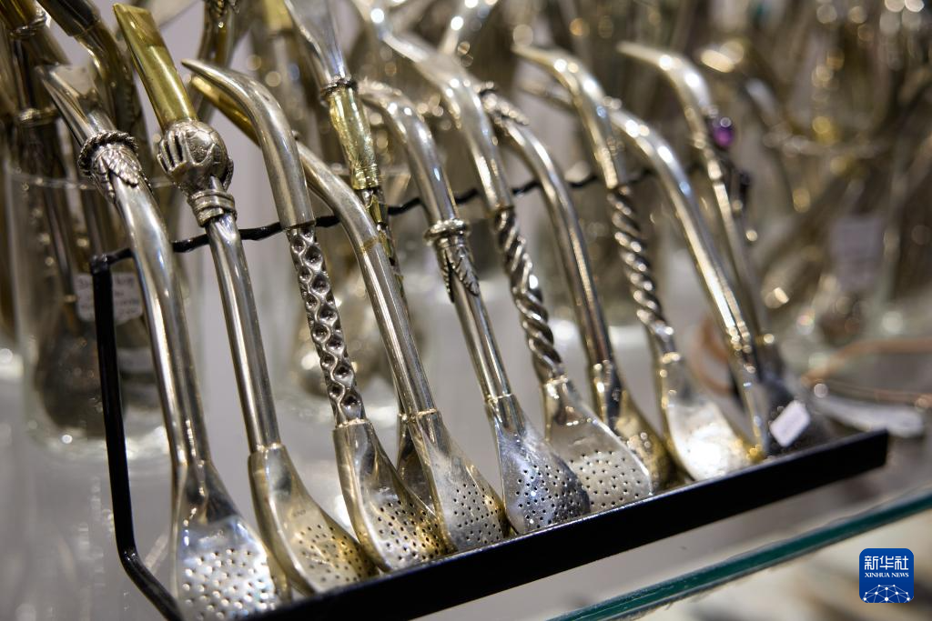 这是5月20日在阿根廷布宜诺斯艾利斯拍摄的马黛茶吸管。