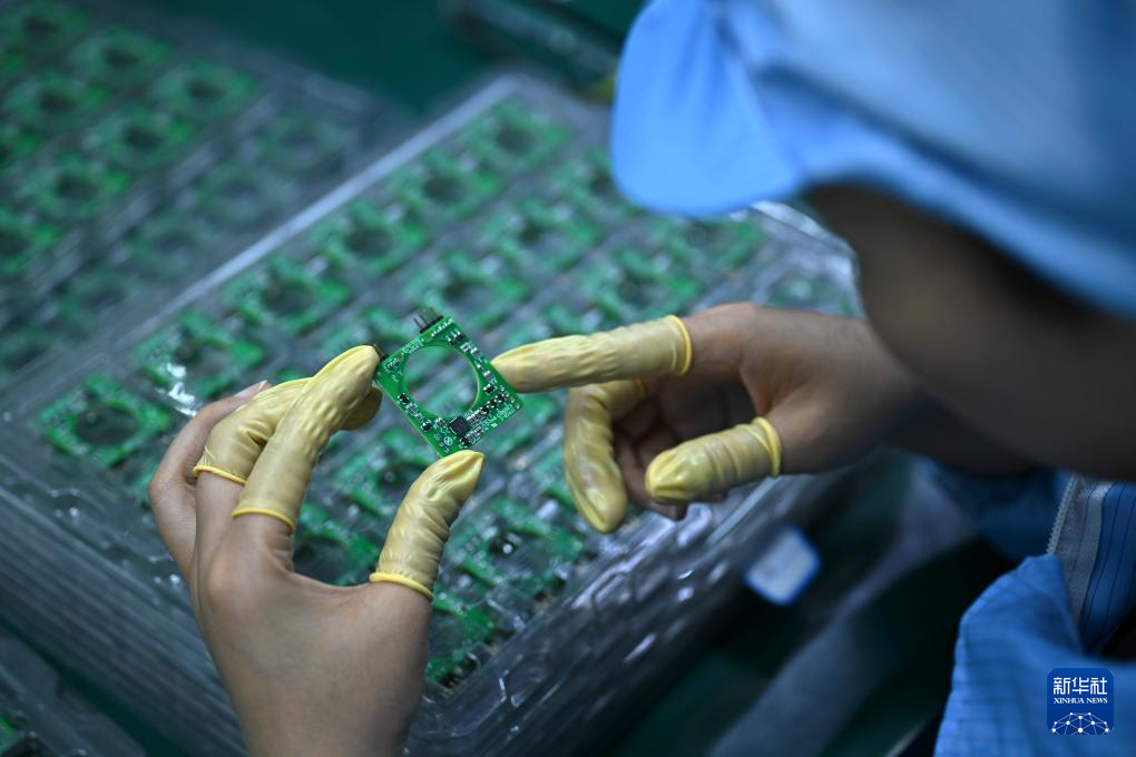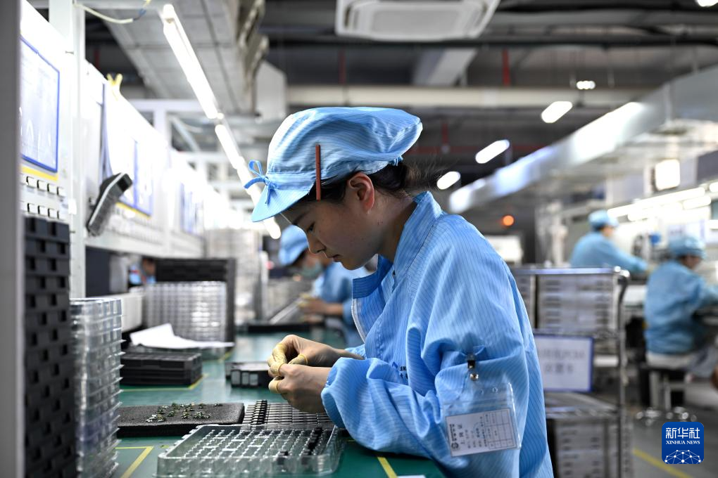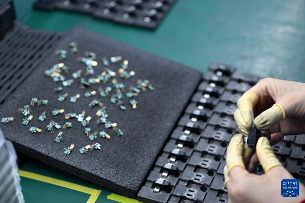 5月21日,安徽希磁科技股份有限公司的工作人员在组装一款传感器。