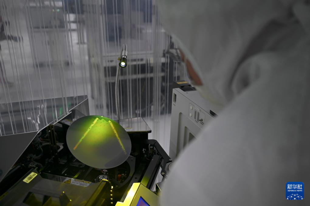 5月21日,安徽华鑫微纳集成电路有限公司的工作人员在检测MEMS晶圆。