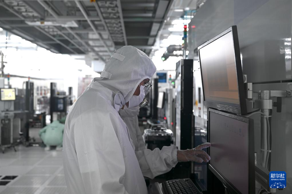 5月21日,安徽华鑫微纳集成电路有限公司的工作人员在MEMS晶圆生产线上忙碌。