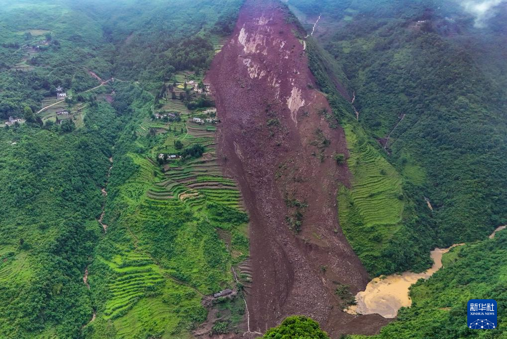 这是大方县果瓦乡庆阳村山体滑坡发生后的现场画面(5月22日摄,无人机照片)。