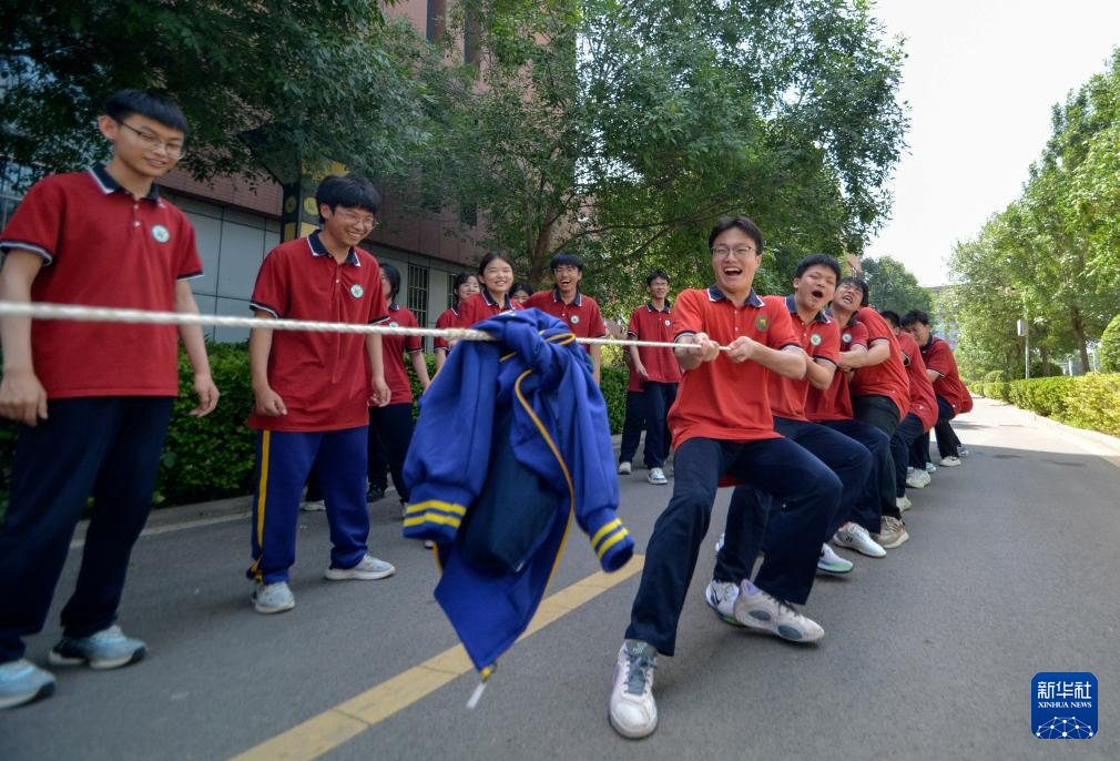 5月20日,河北省邯郸市邯山区第一中学高三学生开展拔河比赛。
