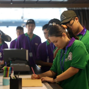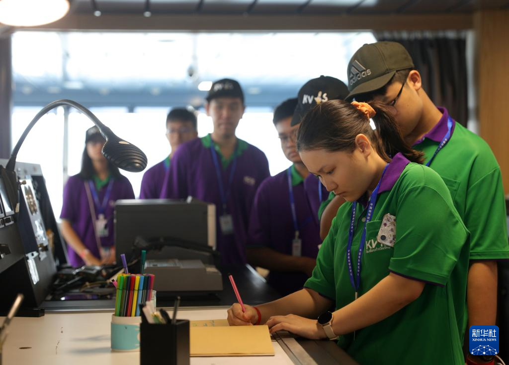 5月21日,泰国中学生排队在“雪龙2”号记录本上签名、留言。