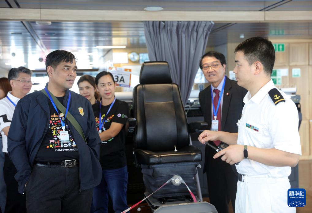 5月21日,“雪龙2”号工作人员向泰国民众介绍科考船驾驶设备。