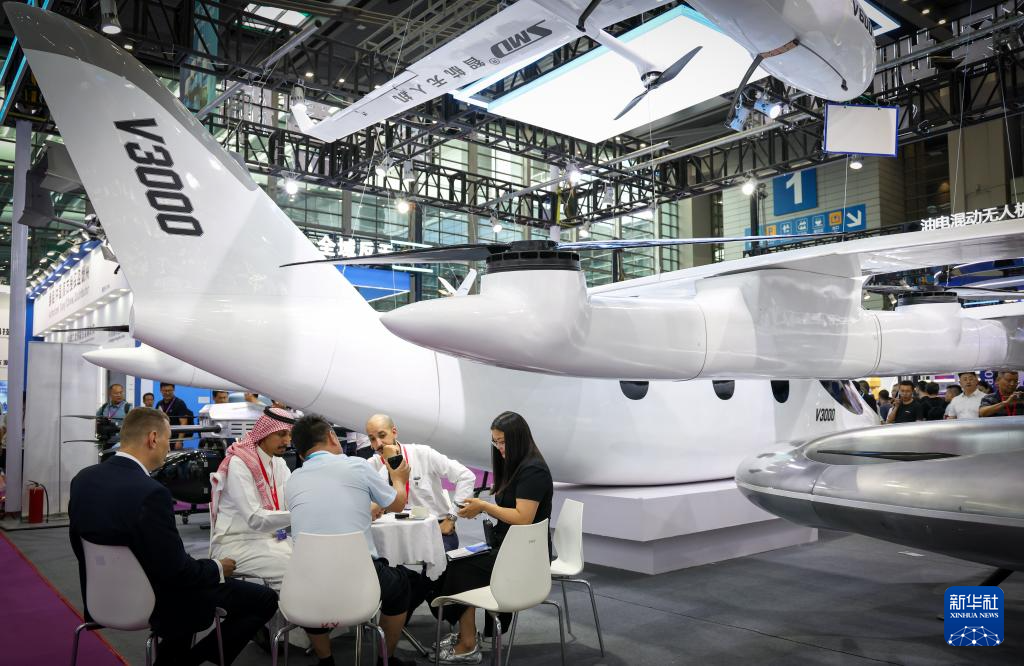 5月23日,参会者了解一款新品纵列式无人直升机。