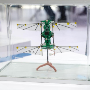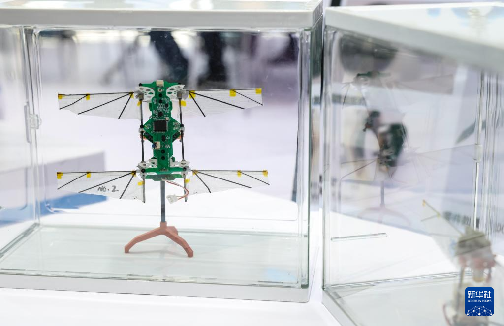 5月23日,中国科学院合肥物质科学研究院展出的微型仿生昆虫飞行器。