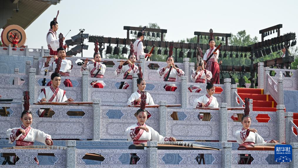 5月23日,演员在乙巳年世界华人炎帝故里寻根节上演奏鼓乐。