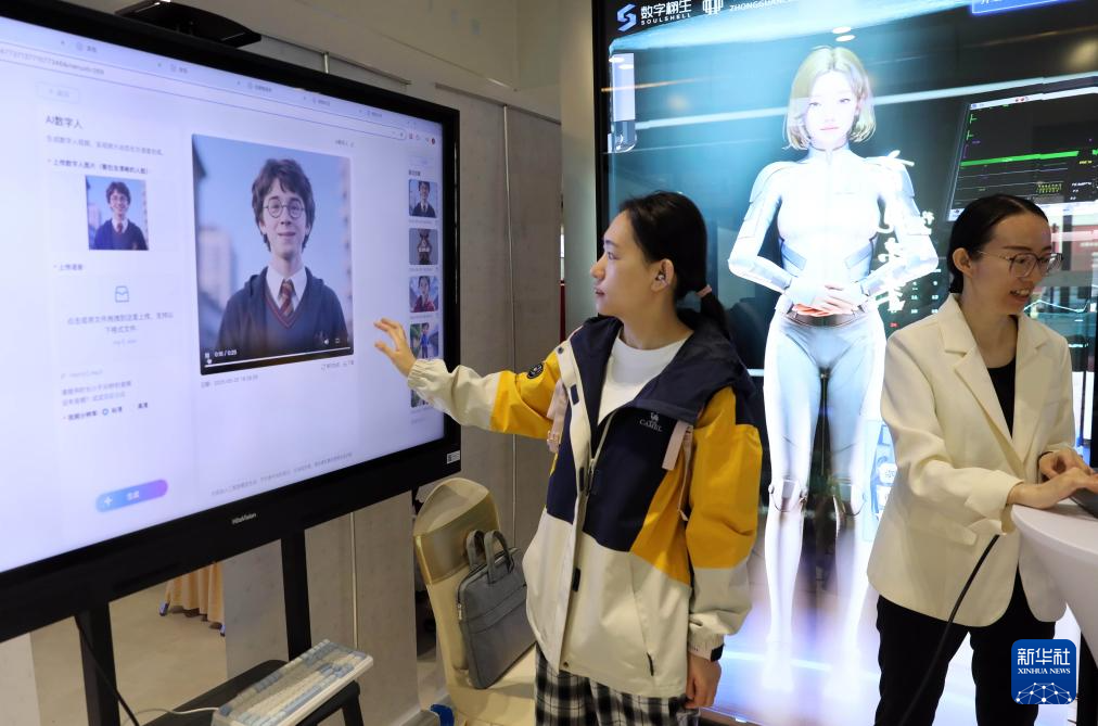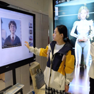 5月24日,与会者在体验外研在线AI教师助手的AI数字人功能。