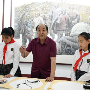 今年是中国人民抗日战争暨世界反法西斯战争胜利80周年,在沂蒙革命老区山东省日照市莒县,小学生们走进沂蒙画派研究院,学习绘画知识,欣赏绘画作品,聆听画作背后的沂蒙故事,感受沂蒙精神,接受爱国主义教育。