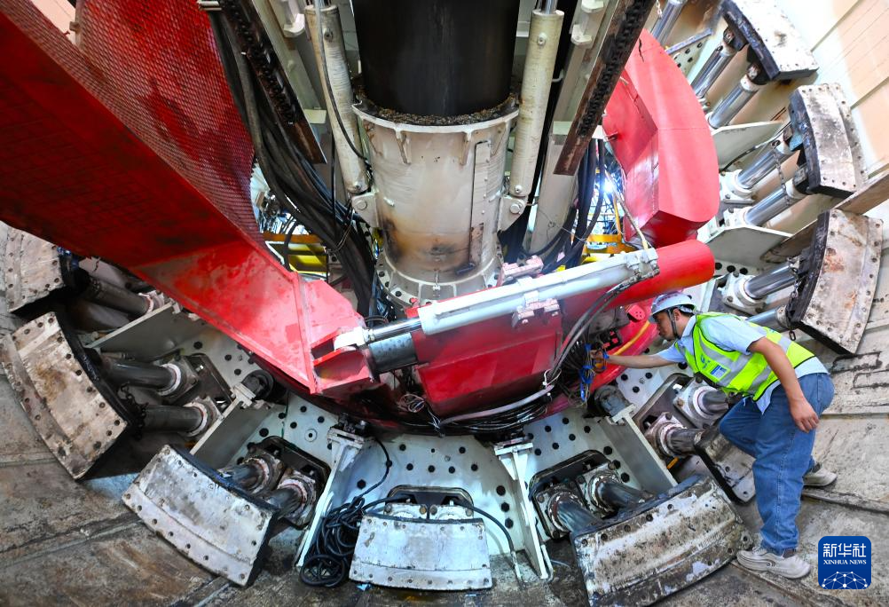 5月26日,施工人员在“青年先锋号”盾构机始发前检查设备。
