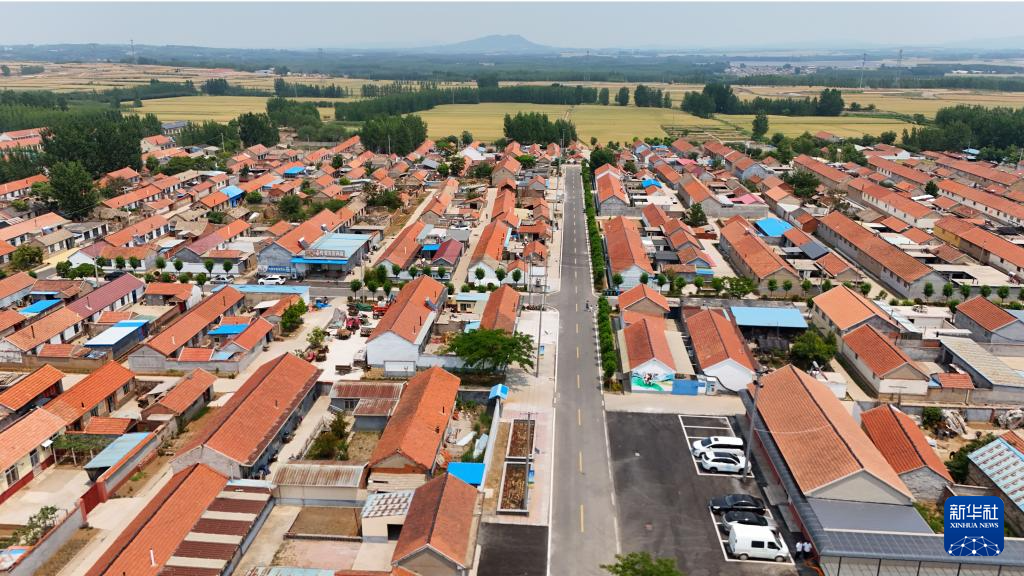 这是5月25日拍摄的五莲县许孟镇曹家屯村。刚刚经过翻新整治的村中道路干净整齐(无人机照片)。
