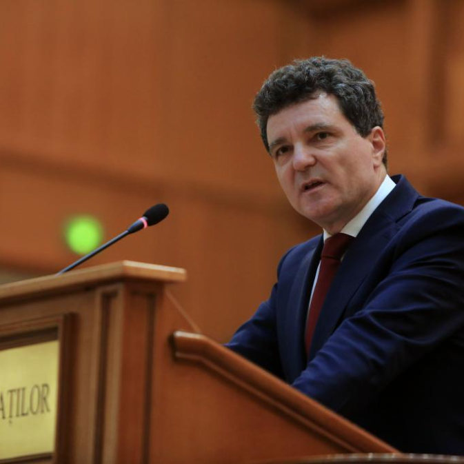 5月26日,在罗马尼亚首都布加勒斯特,罗马尼亚当选总统尼库绍尔·达恩出席就职仪式后讲话。