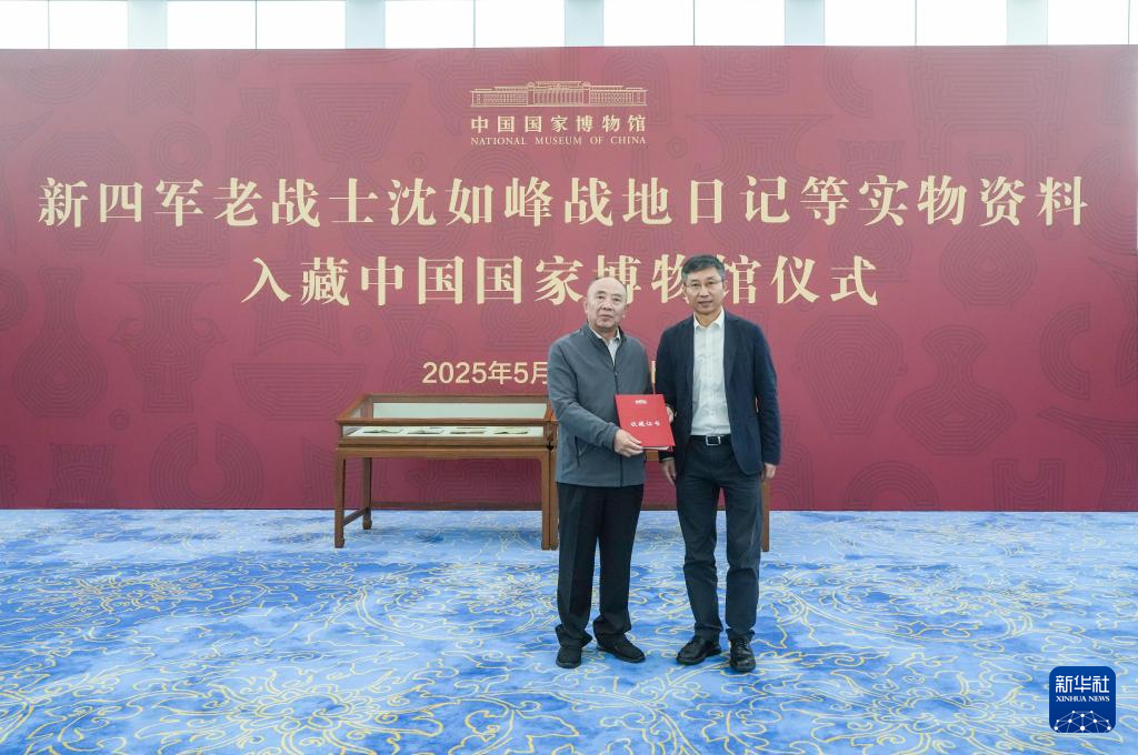 5月26日,“新四军老战士沈如峰战地日记等实物资料入藏中国国家博物馆仪式”在中国国家博物馆白玉厅举行,新四军老战士沈如峰在解放战争时期的战地日记、与家人的往来书信等相关实物资料共21件入藏中国国家博物馆。