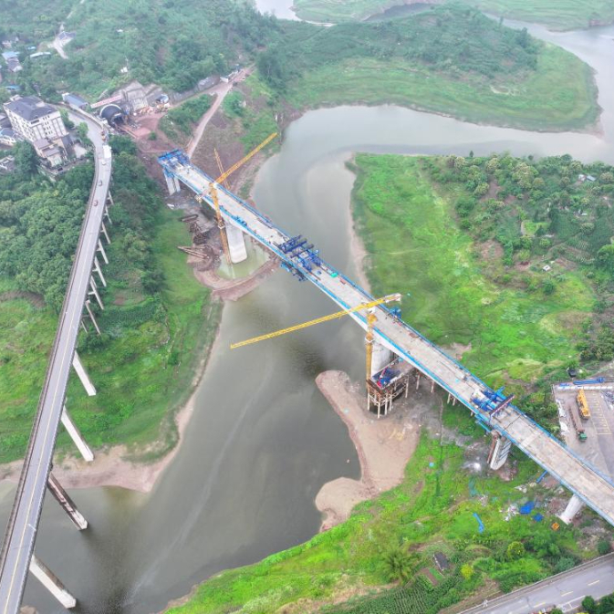 这是5月27日拍摄的渝万高铁珍溪河双线大桥建设现场(无人机照片)。